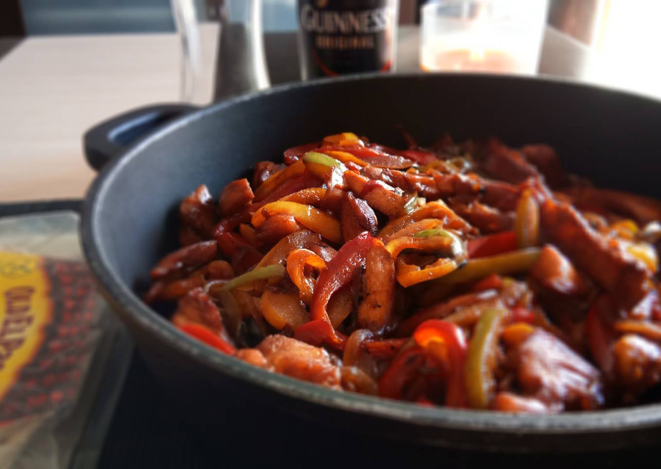 Fusión de la gastronomía Mejicana con ingredientes Orientales. Perfecta fusión para acompañar de una Guinness Original, una cerveza negra espumosa con burbujas.