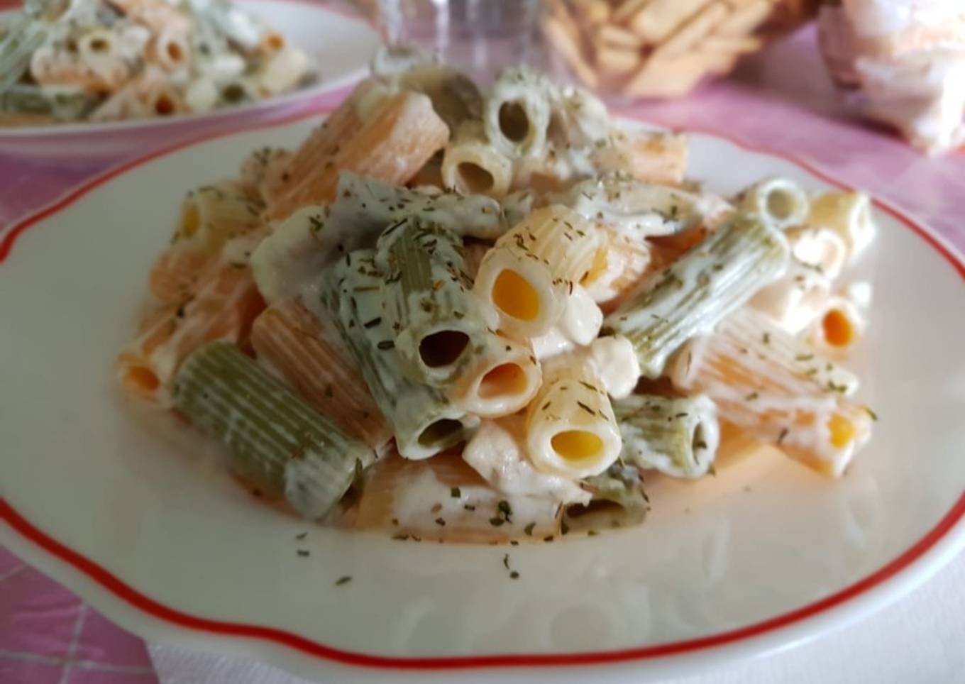 Pasta con pollo y champiñones