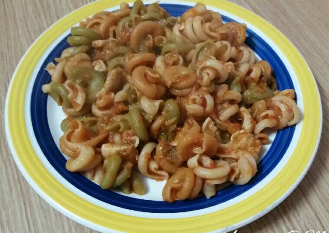 - Mezclamos la pasta, el sofrito y el tomate en la olla y removemos. Servimos.